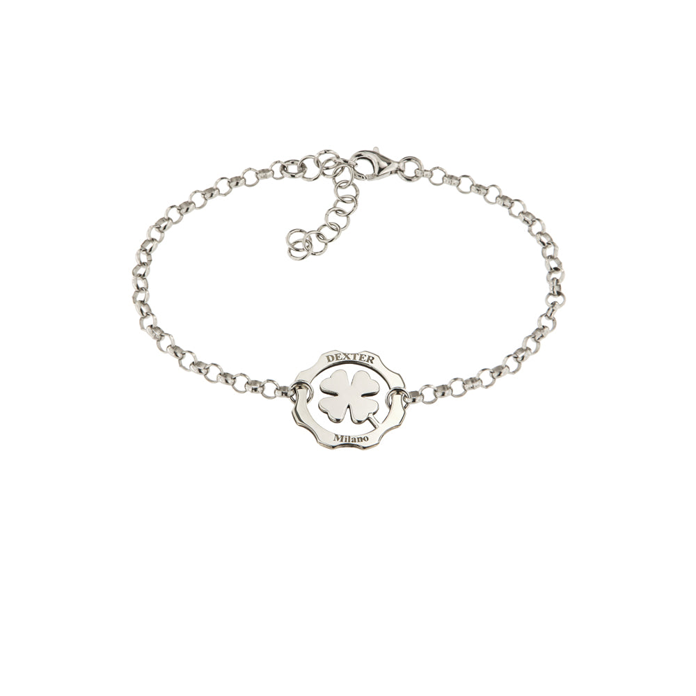 - DEXTER gear in platinum rhodium-plated silver with a silhouette of a lucky clover leaf inside