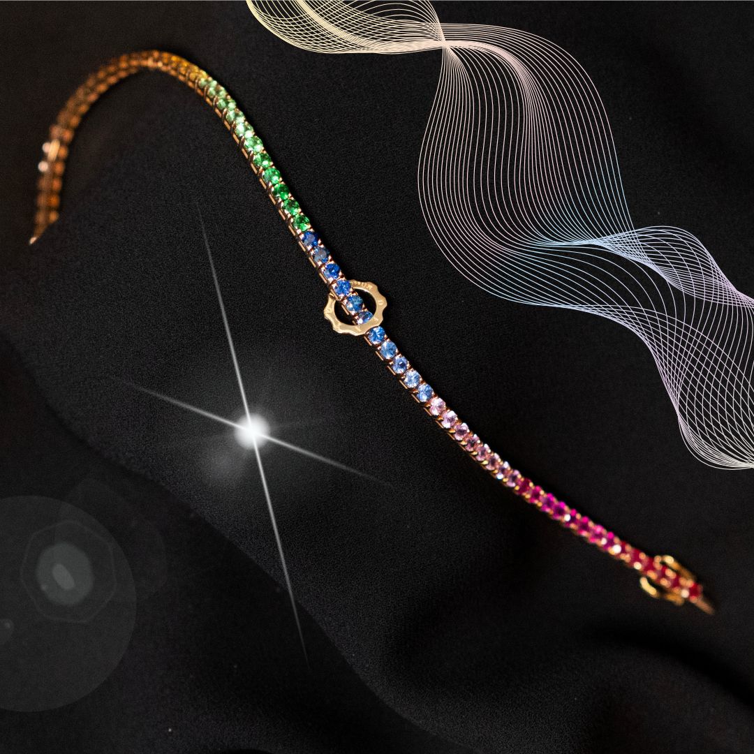 Tennis bracelet with rainbow sapphires