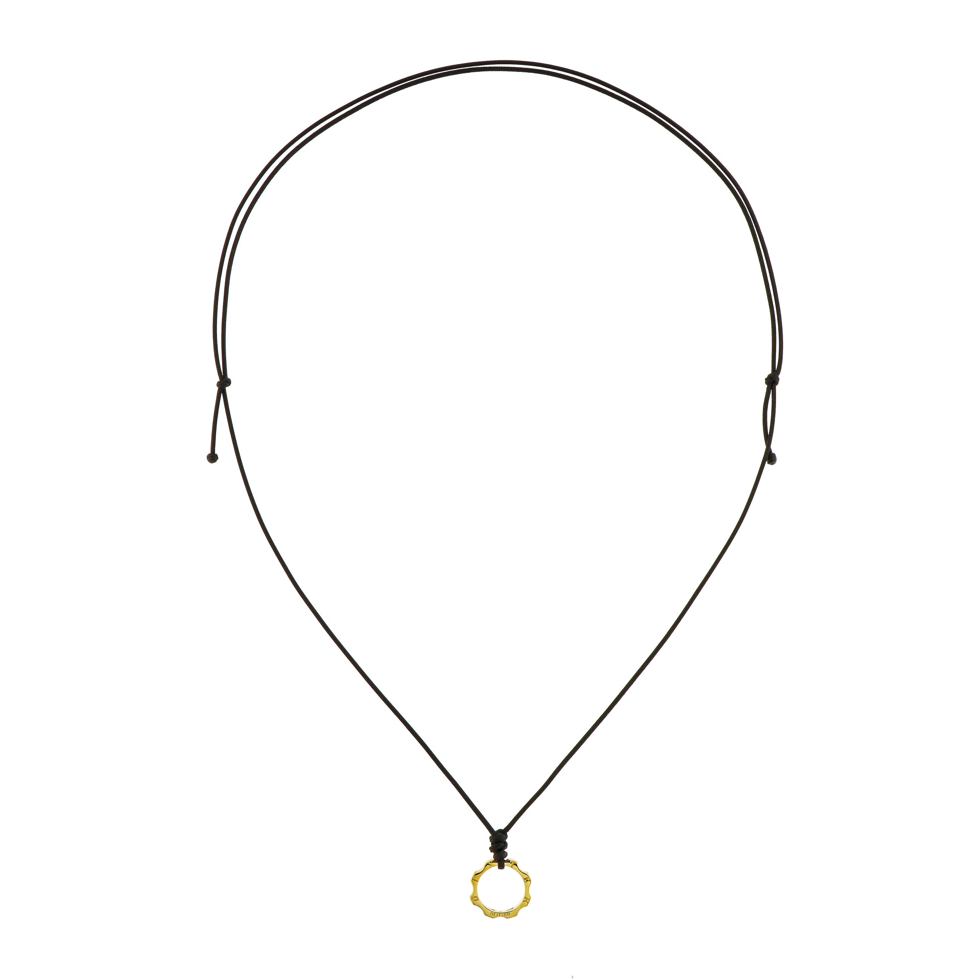 - DEXTER's classic yellow gold time gear used as a pendant thanks to durable black nautical wire