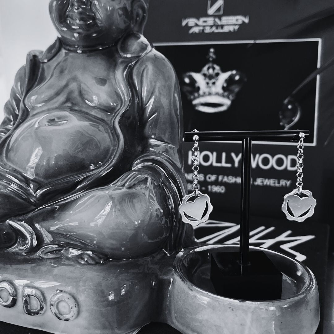 - Orecchini pendenti in argento al platino, ingranaggio DEXTER con all'interno il simbolo del CUORE